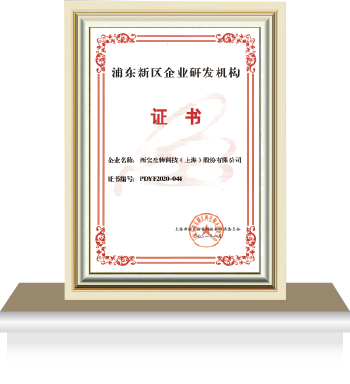 ![]() 浦東新區(qū)企業(yè)研發(fā)機(jī)構(gòu)證書 |