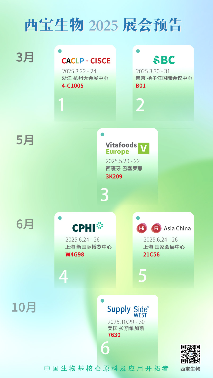 在SBC展會(huì)現(xiàn)場(chǎng),西寶生物會(huì)將自己的創(chuàng)新成果和核心技術(shù)多元化展示出來(lái),我們的團(tuán)隊(duì)也會(huì)像貼心小助手一樣,隨時(shí)給你答疑,和你一起聊聊行業(yè)的發(fā)展風(fēng)向,說(shuō)不定還能碰撞出合作的奇妙火花!期待在南京和你相遇,一起在合成生物學(xué)的宇宙里,闖出一片屬于我們的璀璨星空!