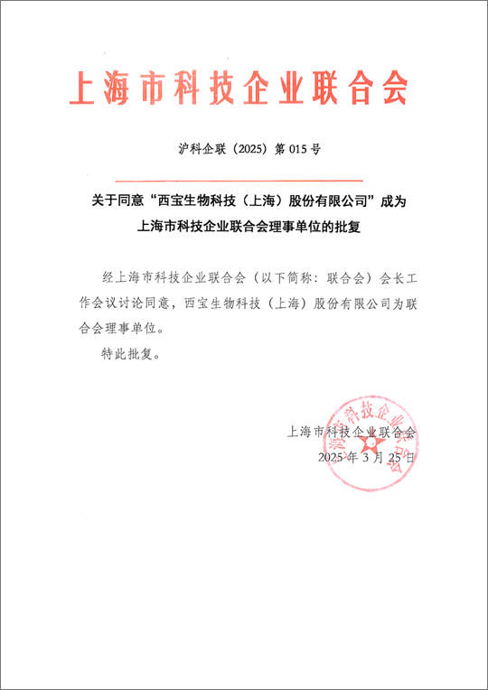 近日,西寶生物科技(上海)有限公司(以下簡稱“西寶生物”)喜訊連連。在上海市科學(xué)技術(shù)委員會的指導(dǎo)下,憑借持續(xù)創(chuàng)新能力,西寶生物順利通過國家高新技術(shù)企業(yè)重新認定,并正式成為上海市科技企業(yè)聯(lián)合會理事單位。兩項閃閃發(fā)光的成就展現(xiàn)了西寶生物在生物科技領(lǐng)域的創(chuàng)新實力與產(chǎn)業(yè)影響力,也為長三角生物經(jīng)濟創(chuàng)新生態(tài)建設(shè)注入了新活力。