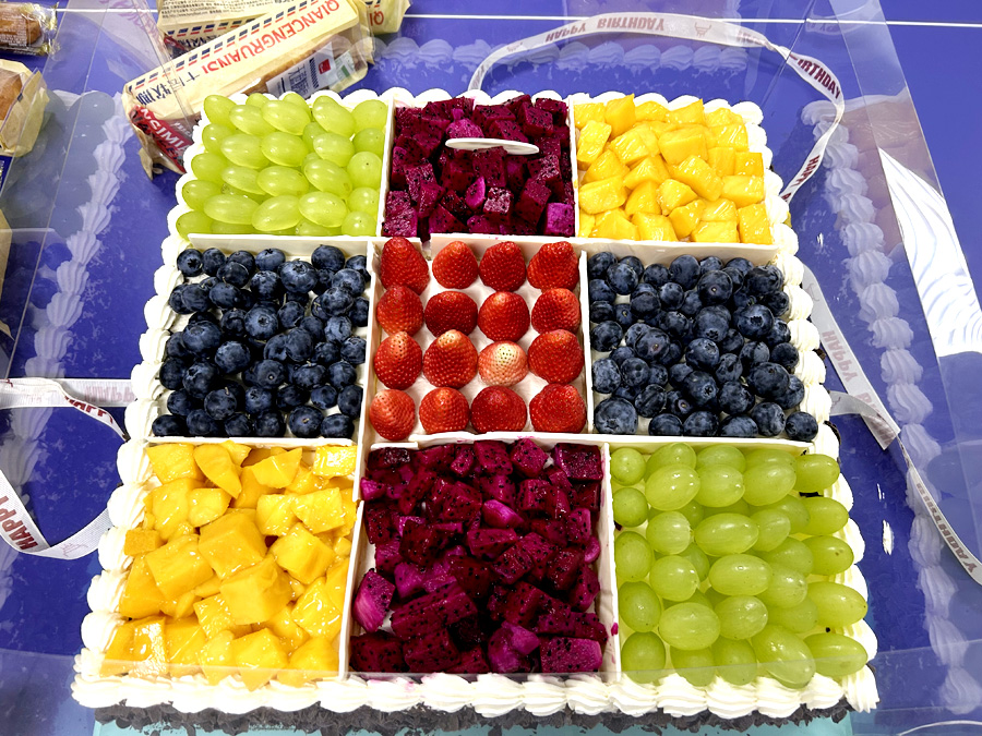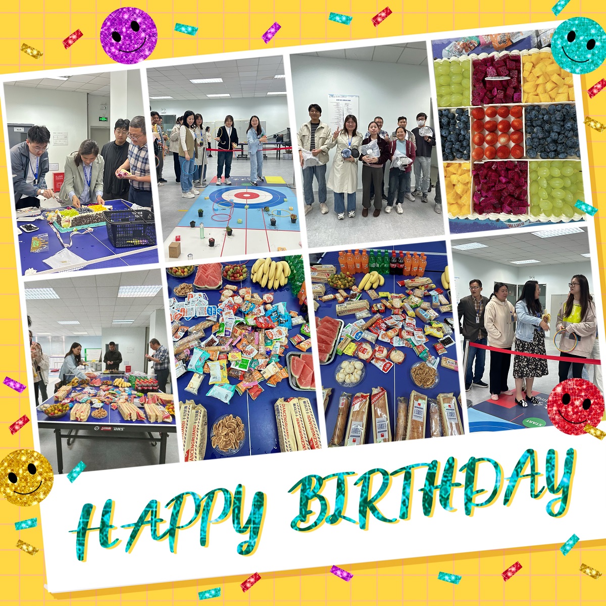 活動現(xiàn)場搖身一變,成了承載歡笑與溫情的交流空間。琳瑯滿目的零食、沁爽的飲料、新鮮可口的水果整齊陳列于長桌,象征美好祝愿的生日蛋糕占據(jù)視覺中心,儀式感拉滿。伴隨著溫馨的生日歌旋律,壽星們齊聚蛋糕前,雙手合十許下心愿。當(dāng)蠟燭熄滅的瞬間,熱烈的歡呼聲與掌聲交織,甜蜜的蛋糕傳遞間,“家文化”的溫暖在每一位員工心中流淌。