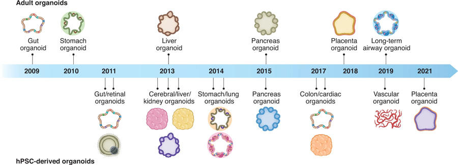 經(jīng)過(guò)十幾年的發(fā)展,越來(lái)越多的類器官模型被成功建立,包括成體干細(xì)胞來(lái)源以及誘導(dǎo)多能干細(xì)胞來(lái)源。