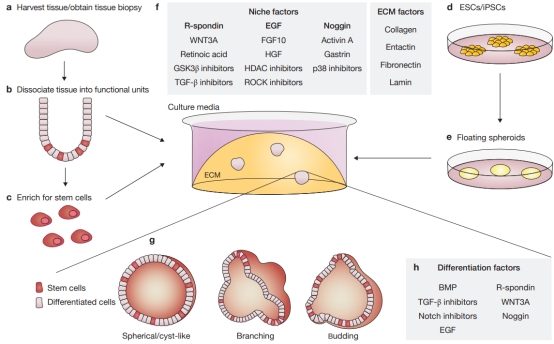 類器官是指來(lái)源于胚胎干細(xì)胞(ESCs)、誘導(dǎo)多能干細(xì)胞(iPSCs)、新生兒或成人干細(xì)胞(ASCs),腫瘤細(xì)胞等,在體外特定的3D環(huán)境中生長(zhǎng),形成微小的細(xì)胞簇,自組織并分化成功能細(xì)胞類型,再現(xiàn)了體內(nèi)器官的結(jié)構(gòu)和功能(因此也被稱為“微型器官”)。