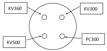 KV300,大小約2cm,其他情況同1:250 組。