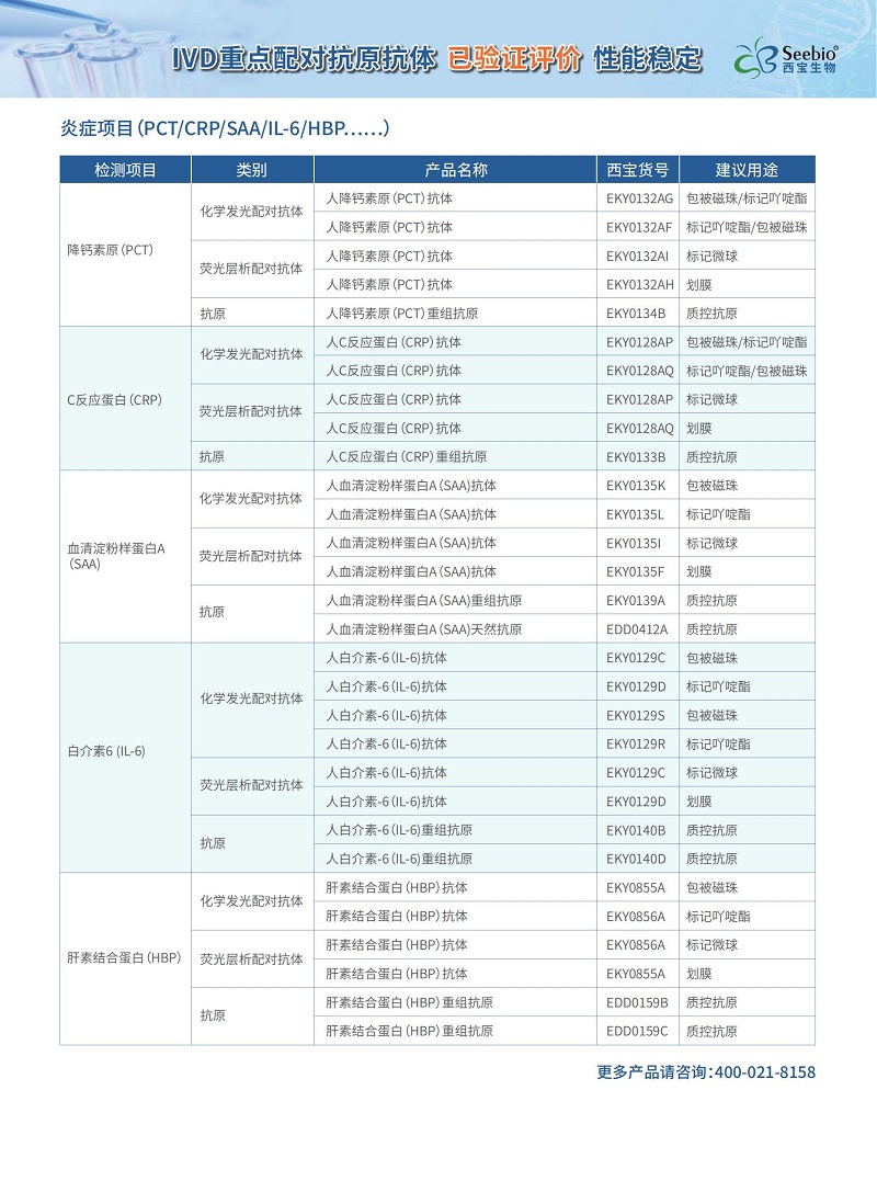 西寶生物IVD重點(diǎn)評估驗(yàn)證配對項(xiàng)目,已驗(yàn)證評價(jià),性能穩(wěn)定,更多產(chǎn)品服務(wù)請咨詢:400-021-8158。