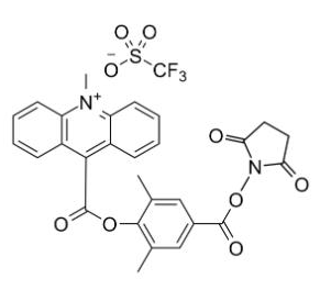 - 別名:2',6'-二甲基羰基苯基10-甲基-9-吖啶甲酸酯4'-NHS酯三氟甲基磺酸鹽 ;2',6'-Dimethylcarbonylphenyl 10-Methyl-9-acridinecarboxylate 4'-NHS Ester Triflate