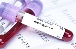 PG是胃蛋白酶的無(wú)活性前體,可分為PGI和PGII種亞型。PGI主要由胃體和胃底腺的主細(xì)胞和頸黏液細(xì)胞分泌,而 PGII除由胃底腺分泌外,胃竇幽門腺和近端十二指腸 Brunner腺亦可分泌。當(dāng)胃黏膜發(fā)生萎縮時(shí),血清PGI水平和(或)PGI/II比值(PGR)降低。血清中約存在人體1%的PG,其血清水平可作為胃黏膜形態(tài)和功能狀態(tài)的標(biāo)志,聯(lián)合Hp檢測(cè)可識(shí)別出胃癌的高危個(gè)體。